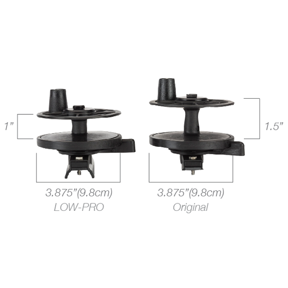 Low-profile designs made of composite materials (Nylon-Fiberglass) including heat treated aluminum parts with a hard anodized surface. Lighter weight and lower profile aid in quicker tracking and maneuverability.